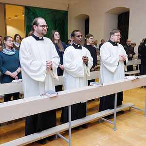 Im Zuge der Donnerstagsabendmesse feierten wir am 18. Jänner 2024 gemeinsam mit Diözesanbischof Josef Marketz, unseren Mitstudierenden, Freunden und Familienangehörigen die Beauftragung von drei Seminaristen der Kärntner Seminargemeinschaft in der Priesterseminarkapelle.