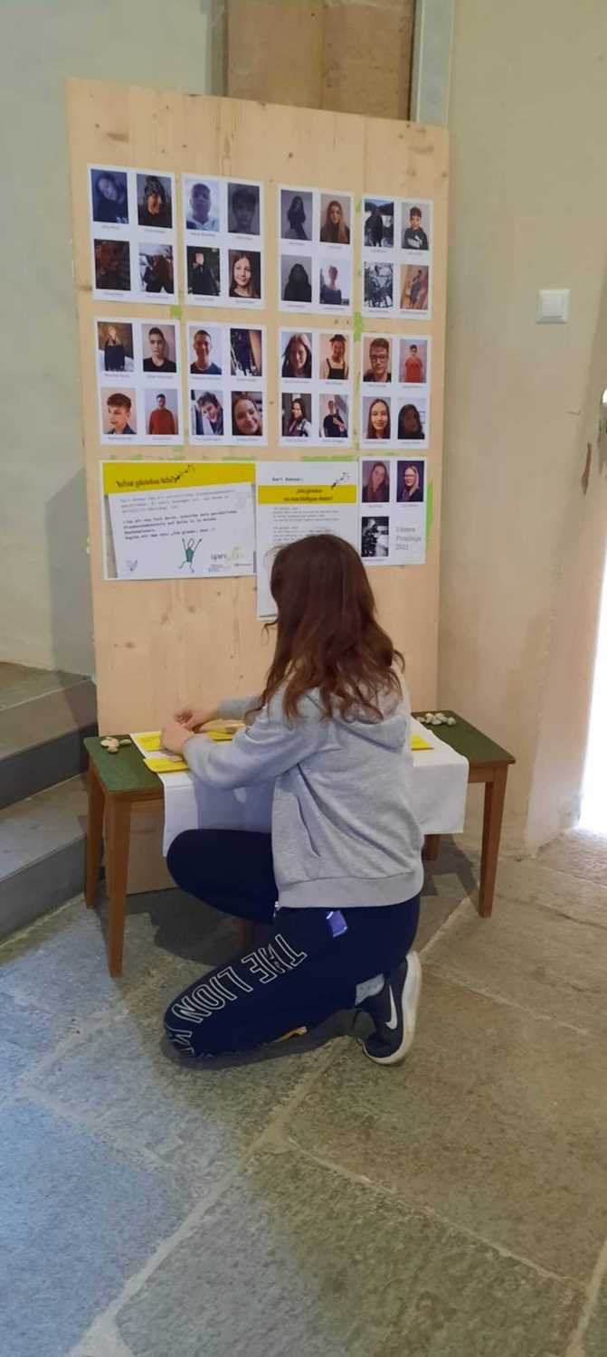 Im Rahmen der Firmvorbereitung waren die Firmlinge eingeladen, zusammen mit ihren Firmpaten oder einem anderen Begleiter einen Weg mit sieben Stationen zu absolvieren. Jede Station dieses „Spiriwalks“ war einem bestimmten Lebens- und Glaubensthema gewidmet. Ihre Gedanken dazu - Fragen, Meinungen und Antworten - konnten die Firmlinge mit ihrem Begleiter besprechen und dann ins Begleitheft schreiben.