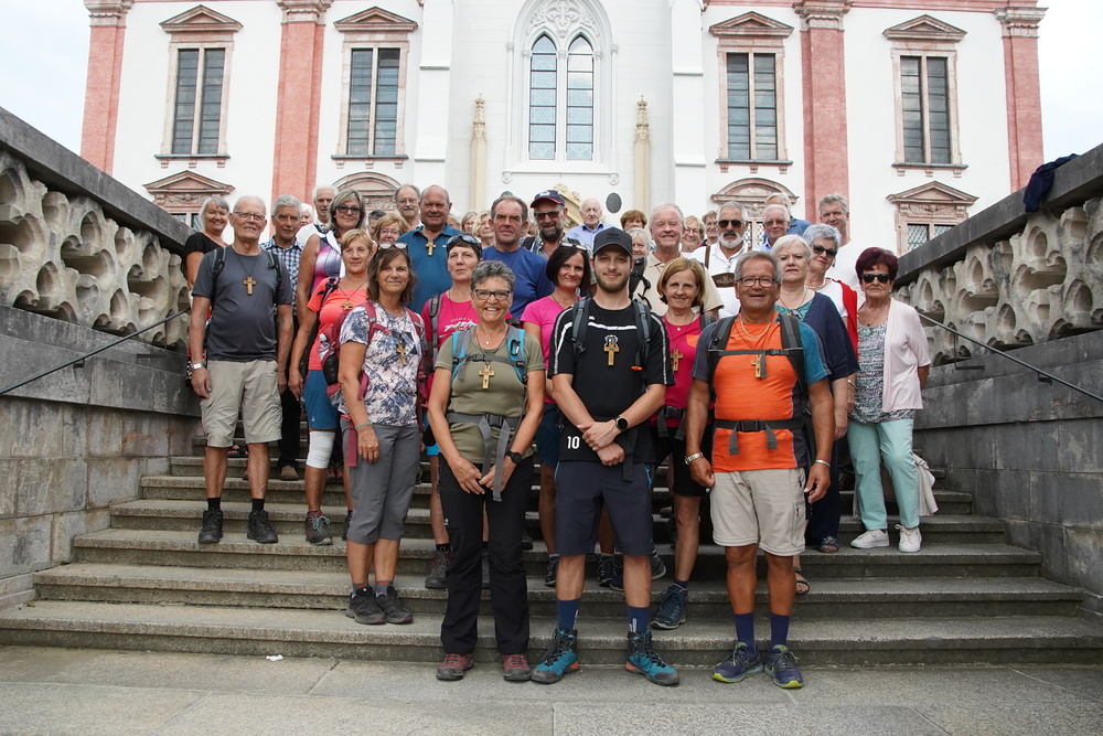 3.Tag: Herzliche Begrüßung der Fußwallfahrer vor der Basilika Mariazell durch die nachgereisten Buswallfahrer aus dem Pfarrverband. Als krönenden Abschluss feierten wir gemeinsam eine Heilige Messe mit Prof. Schlacher vor der Magna Mater.