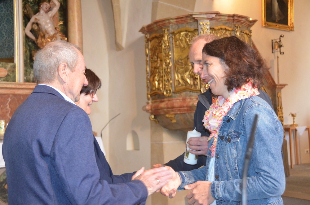 Am Ende des Gottesdienstes wurden die Paare geehrt und erhielten eine Kerze unserer Pfarre, danach eine kleine Verköstigung im Pfarrhaus.