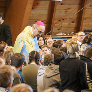 Nach dem traditionellen Würstlessen animierte eine Band die Kinder zum Mitsingen und Mittanzen. Währenddessen stand unser Bischof wieder für Selfies und Gruppenfotos zur Verfügung.