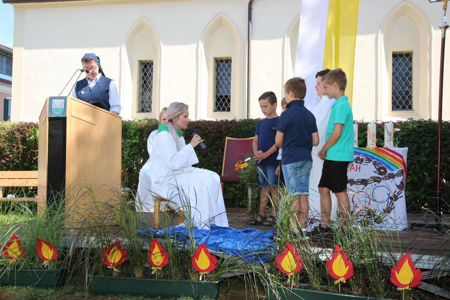 Sr. Maria begleitet die Kinder bei der ersten Wort-Gottes-Feier im österreichischen Fernsehen.