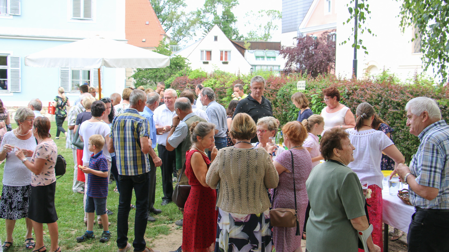 Nach dem Gottesdienst gab es noch eine Agape mit gemütlichem Beisammensein auf der Pfarrwiese.
