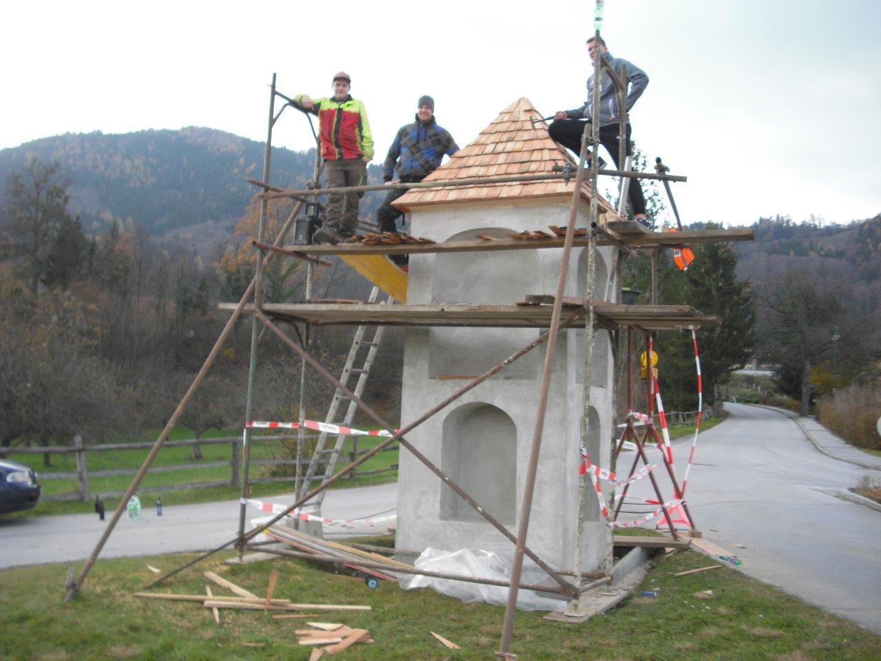 Restaurierung beim Werfenbauer-Kreuz in Adriach am 18. November 2017