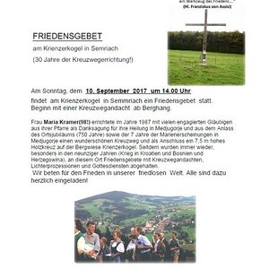 findet  am Krienzerkogel  in Semmriach ein Friedensgebet  statt.