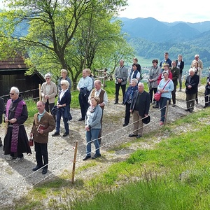 Bei schönem Wetter und toller Aussicht auf Frohnleiten wanderten zahlreiche Personen mit. Pater Simon gestaltete diese Feldersegnung mit Unterstützung der Dirnbergbauern.