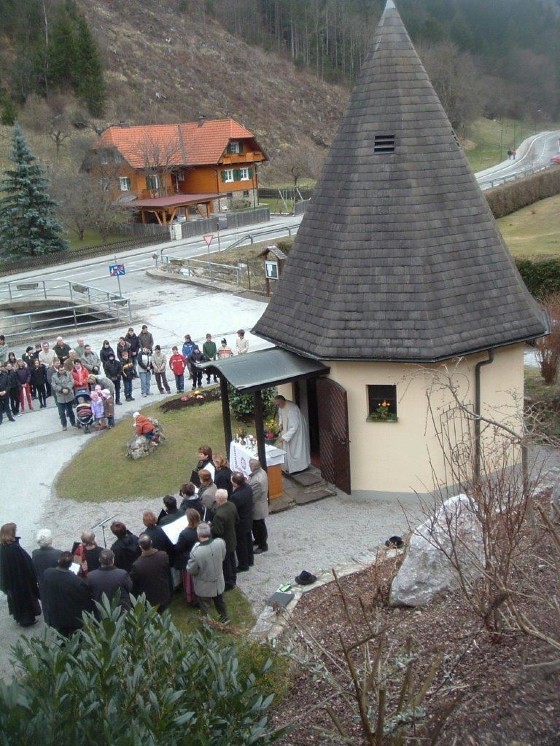 Im Oktober 1980 erfolgte dann der Spatenstich durch den damaligen Bürgermeister Ferdinand Schöberl. Die neue Dorfkapelle wurde auf Basis freiwilliger, unentgeltlicher Arbeit errichtet. In der 2-jährigen Bauzeit wurden rund 1.800 Arbeitsstunden geleistet, um dieses Bauwerk samt Kriegerdenkmal zu bewerkstelligen. Die Materialkosten für diesen Bau wurden zu einem großen Teil von der Ablösesumme der alten Kapelle und den Spenden der Mitbürger bestritten.