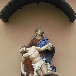 Die Pietastatue ist jährlich am ersten Bitttag Ausgangspunkt für die Bittprozession, die über den Franziskusbrunnen und die Mariensäule zur Pfarrkirche führt.