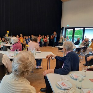 Ein großes Danke gilt dem Wicki-Team, das die­sen schö­nen und bun­ten Nach­mit­tag mö­glich ge­macht hat. Die Kin­der wa­ren mit ih­ren Dar­bie­tun­gen ein gro­ßes Ge­schenk für al­le Gäs­te und mit ih­ren selbst­ge­bas­tel­ten Blu­men, die sie lie­be­voll an alle Se­ni­o­ren ver­teil­ten zau­ber­ten Sie viele lä­cheln­de Ge­sich­ter.