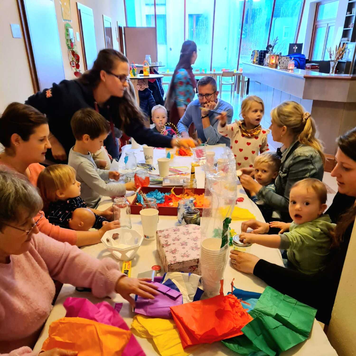 Das Basteln ist ebenfalls ein fixer Bestandteil der Treffen. Der Umgang mit verschiedensten Materialien schult Feinmotorik und Aufmerksamkeit und was herauskommt stärkt das Selbstbewusstsein! Ich kann das! Ich habe etwas geschafft. Das Lob und die Anerkennung von Mama und Papa, sowie der Gruppe verstärkt diesen Effekt.