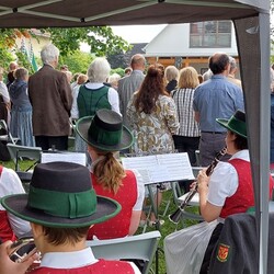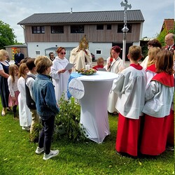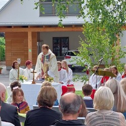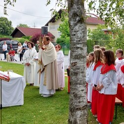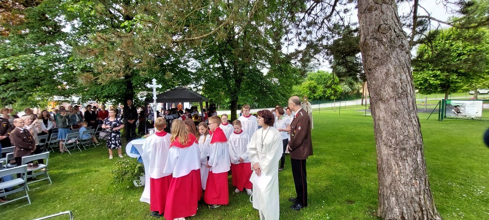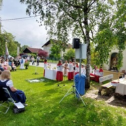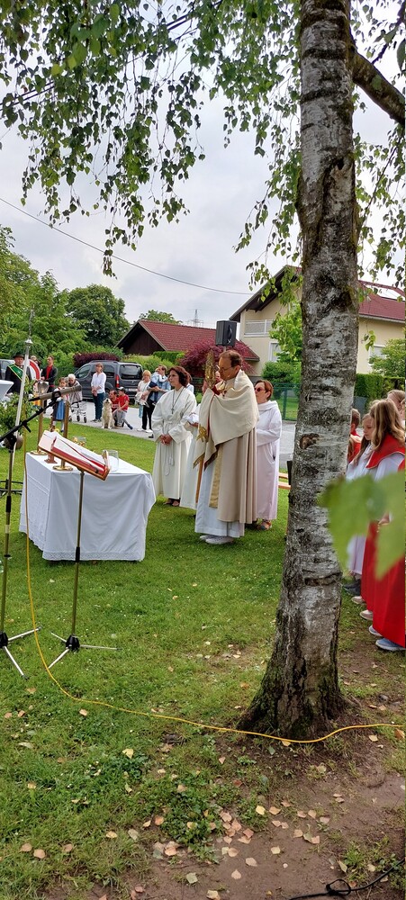 Gemeinsam mit der Pfarre Tobelbad feierten wir das Fronleichnamsfest beim Dorfkreuz in Lieboch. Der auferstandene Herr Jesus, der in der Gestalt des Brotes gegenwärtig ist, steht im Mittelpunkt.