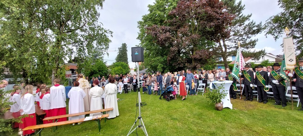 Im Anschluss an die Hl. Messe, zelebriert von Vikar Gerhard Hatzmann und begleitet von Kantorin, Lektoren und liturgischen Diensten beider Pfarren, fand eine Andacht bei den vier Stationen am Dorfplatz statt. Für die kleine Prozession waren vier Brottische als Altäre gerichtet, als Sinnbild für die vier Himmelsrichtungen und dafür, dass Christus der Heiland der ganzen Welt ist. Im gemeinsamen Liedruf "Brot des Lebens" zogen die liturgischen Dienste und die Kinder stellvertretend für das Volk Gottes zu den vier Altären: Brot der Liebe – Brot der Versöhnung – Brot des Friedens – Brot der Hoffnung. Zum Abschluss erteilte Vikar Hatzmann den Eucharistischen Segen, verbunden mit der Einladung, das Allerheiligste gemeinsam zur Kirche zu begleiten. Die Feier schloss mit dem gemeinsam gesungenen "Te Deum" ab. Zu den Feierlichkeiten waren auch die Vereine wie Feuerwehr und ÖKB eingeladen.