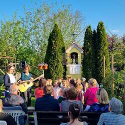 Wie alljährlich hat der KiLi-Chor auch heuer wieder eine Maiandacht beim Bildstock von Hans Koch gestaltet. Das Thema dieser Feier war "Maria, Königin des Friedens". Wir beteten für den Frieden im Kleinen und im Großen. Anschließend gab es noch ein gemütliches Beisamensein im wunderschönen Garten unseres Mesners.