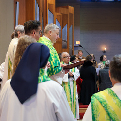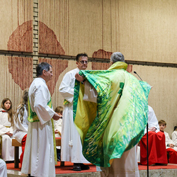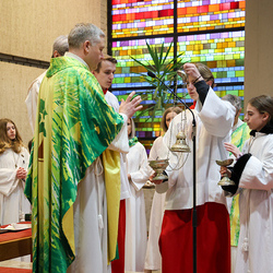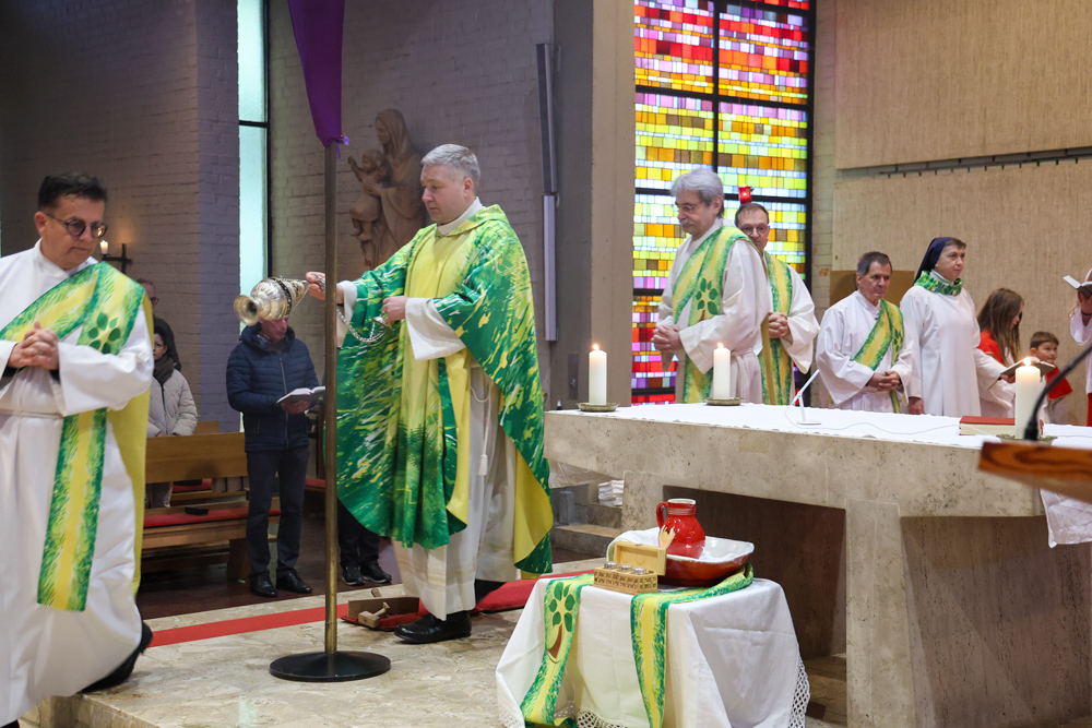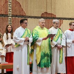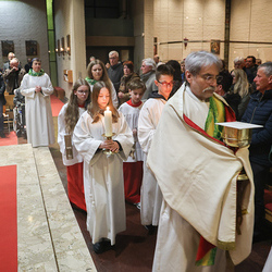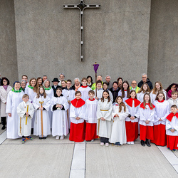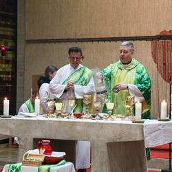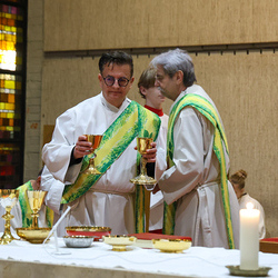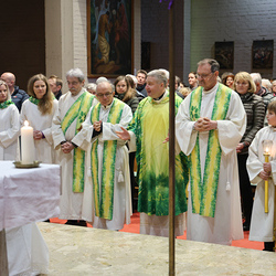 Musikalisch wunderbar umrahmt wurde die Feier vom Seelsorgeraumchor unter der Leitung von Siegfried Kager. Im Altarraum feierte unser gesamtes Seelsorgeteam sowie die Diakone mit. Nicht zu vergessen die etwa 20 Ministrantinnen und Ministranten aus unseren Pfarren. Auch Lektoren und Kommunionspenderinnen aus allen sechs Pfarren gestalteten die Feier mit.