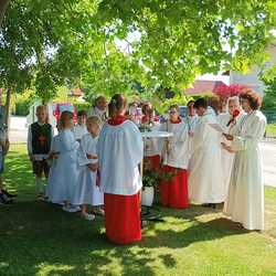 Zu Fronleichnam demonstrieren Katholikinnen und Katholiken ihren Glauben in der Öffentlichkeit. Sie demonstrieren dabei nicht gegen etwas sondern tretenfüretwas ein. Gemeinschaft und Zusammenarbeit zeigten die Pfarren Lieboch und Tobelbad in dieser schönen Feier. Neben den Kindern in ihren Erstkommuniongewändern, waren auch der Kameradschaftsbund und die Feuerwehr mit Abordnungen beider Pfarren vertreten. Vikar Norbert Glaser schloss mit dem eucharistischen Segen für die Kirche.