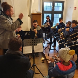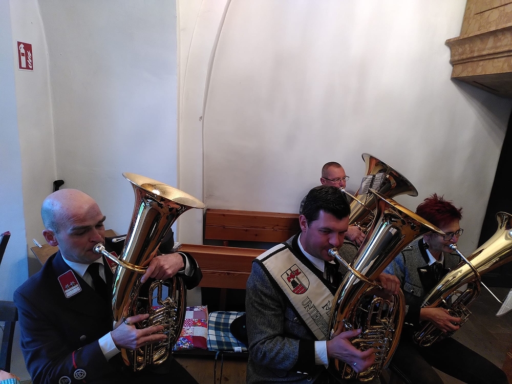 Auf die Christmette, heuer um 21 Uhr, stimmte uns eine Abordnung der MUZ  am Kirchplatz mit weihnachtlichen Weisen musikalisch ein. Herzlichen Dank dafür!