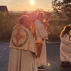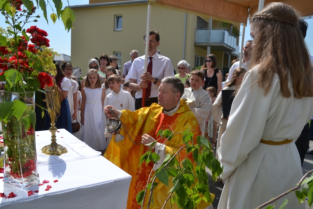 Mit Musik, Gebet und Gesang bewegte sich die Prozession zu den vier Altären, wo Lob und Dank, aber auch Fürbitte ausgesprochen wurden.