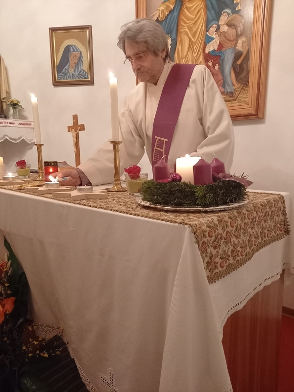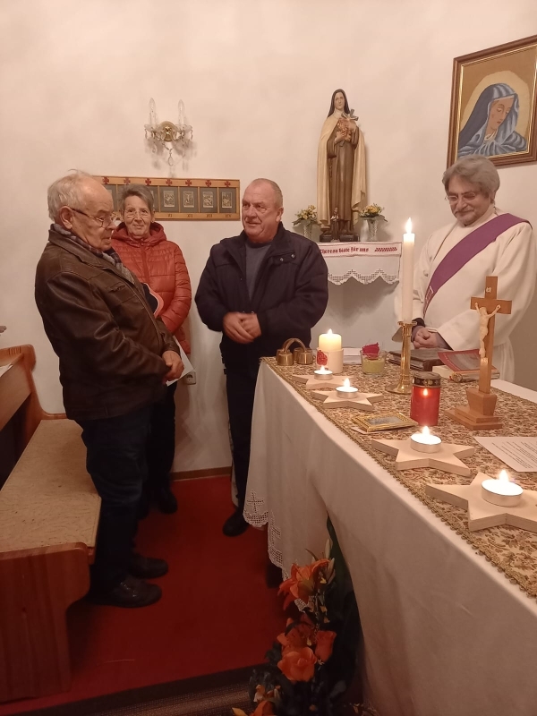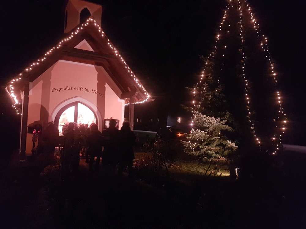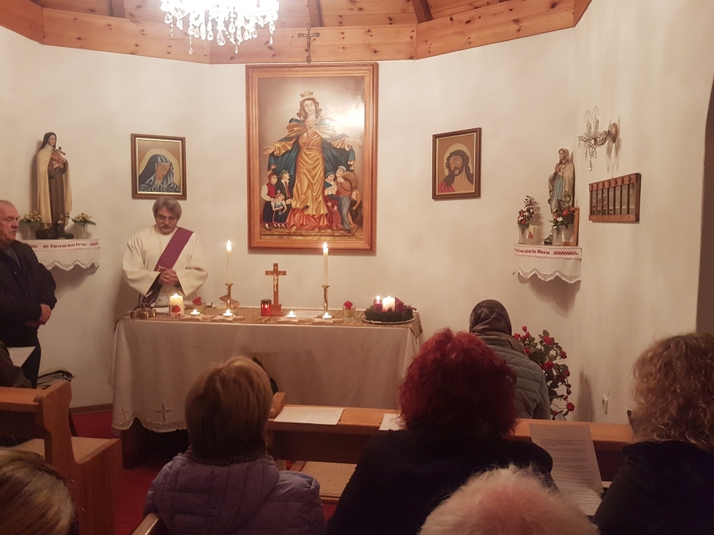 Um 19 Uhr wurde dann - wieder mit Diakon M. Zepf - die Adventkranzsegnung in der Kapelle Kaiserwald gefeiert.