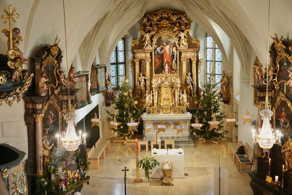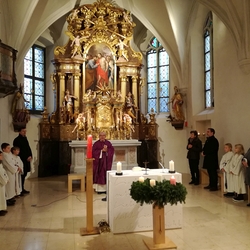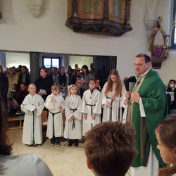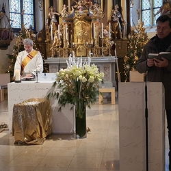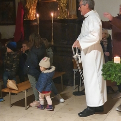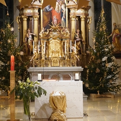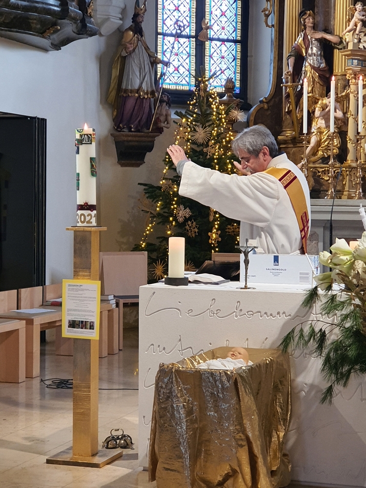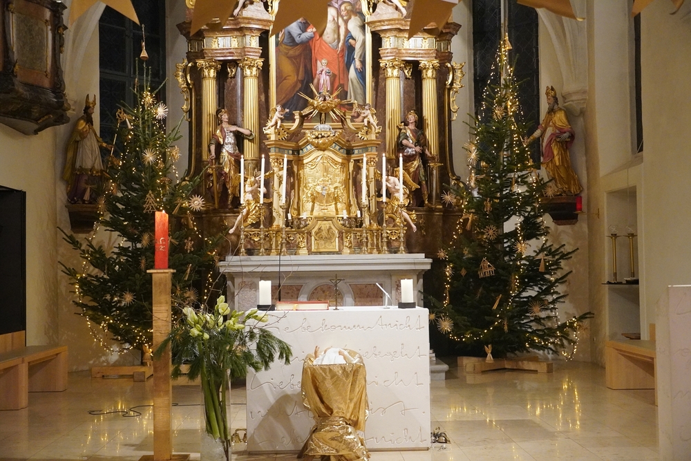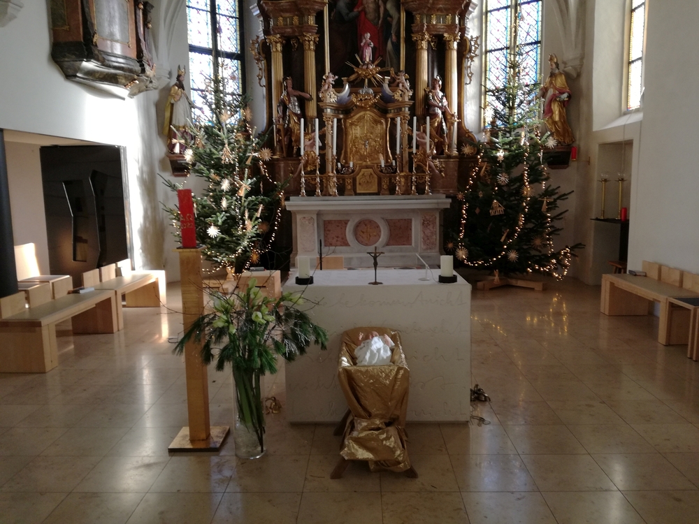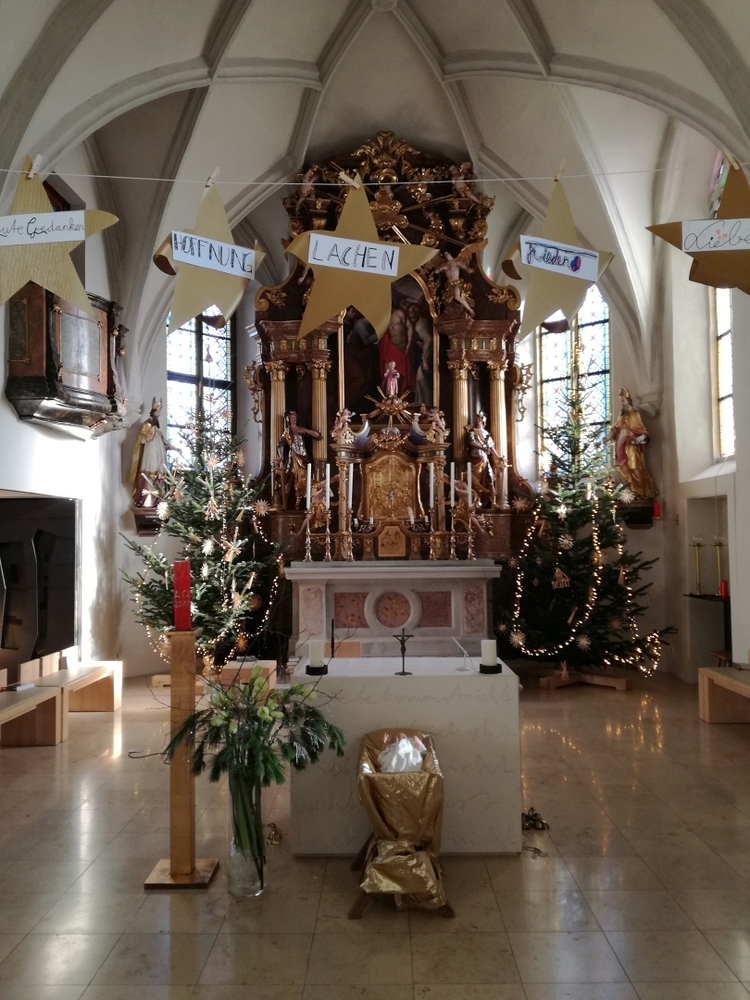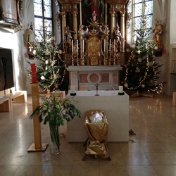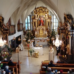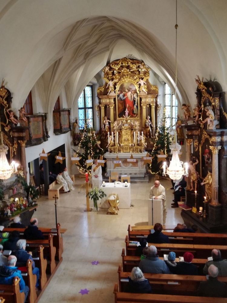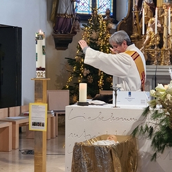 Am Christtag feierte Vikar Norbert Glaser mit der Pfarrgemeinde das Hochfest der Geburt Christi. Das Weihnachtsevangelium und seine Bedeutung für uns heute standen im Mittelpunkt des Festgottesdienstes, der vom Kirchenchor musikalisch gestaltet wurde. Unter der Leitung von Organistin Magdalena Moser wurde neben traditionellen Weihnachtsliedern eine Messe von Karl-Bernhardin Kropf gesungen, die in einstimmiger Fassung - Gotteslob 715 – von den Gläubigen mitzusingen war. So erlebten wir in unserer weihnachtlich strahlenden Kirche einen wahrlich festlichen Weihnachtsgottesdienst!
