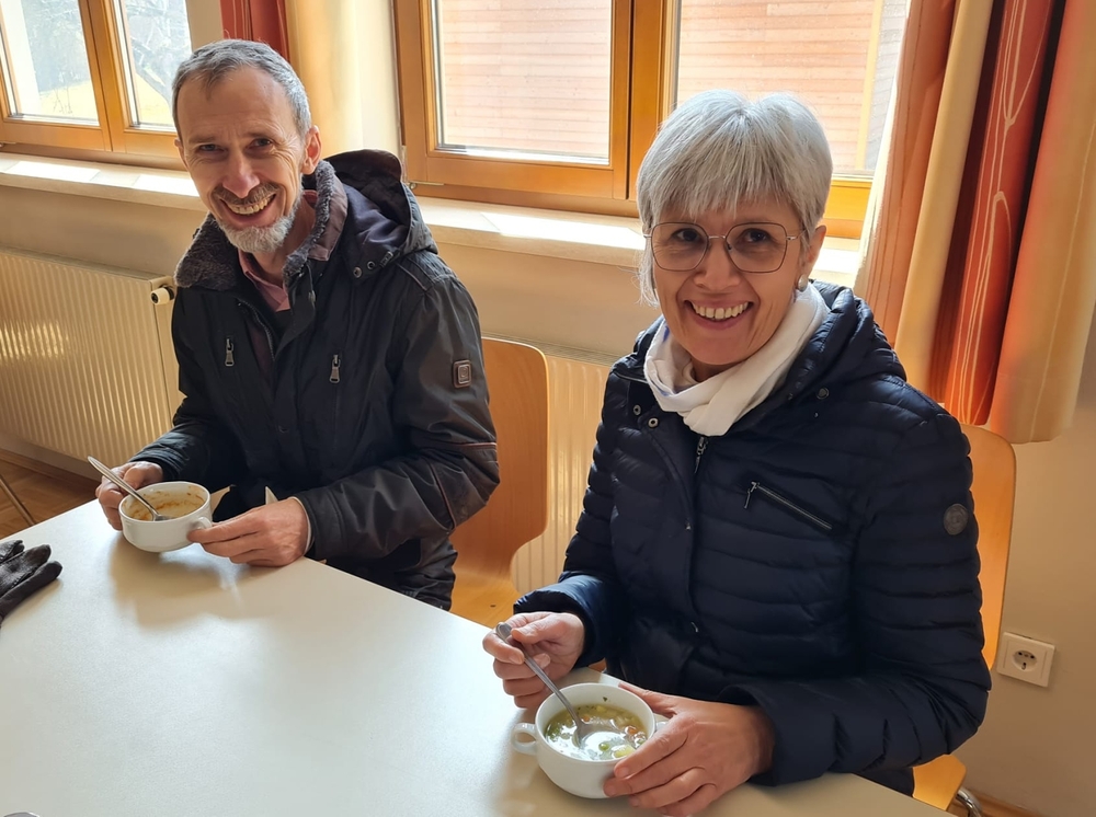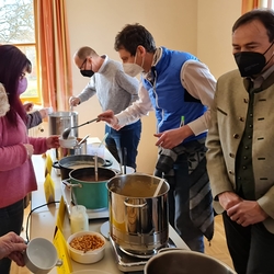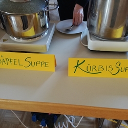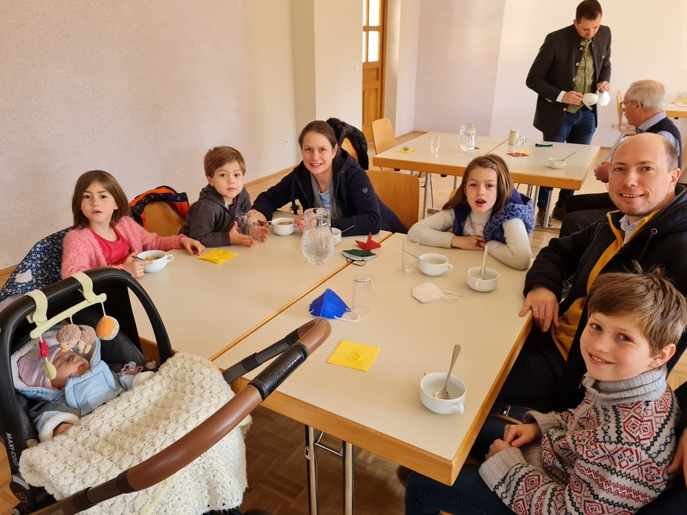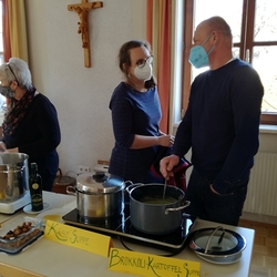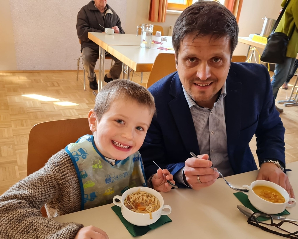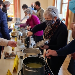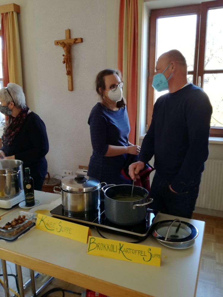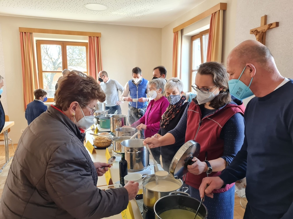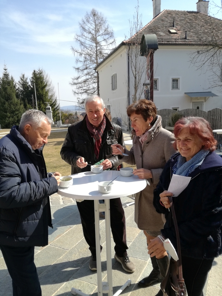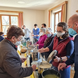 Von Brokkoli-Kartoffelsuppe über Erdäpfel-, Frittaten-, Gemüse- und Käsesuppe bis hin zur Karotten-, Knoblauch-, Kürbis-, Linsen- und Tomatensuppe reichte das Angebot am Suppensonntag unserer Pfarre. Man konnte seine köstliche Suppe im Pfarrsaal oder - bei diesem schönen Wetter - sogar im Freien am Stehtisch genießen. Auch die Suppe im Glas wurde gerne mitgenommen. Danke dem PGR fürs Organisieren und allen Suppenesser:innen für die Spenden, die im Rahmen des Familienfasttages karitativen Zwecken zu Gute kommen.