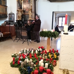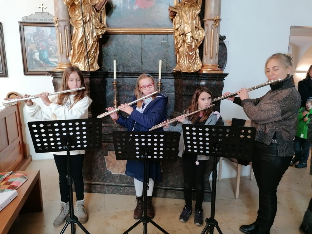 Mit Geigen, Querflöten und Gesang gestalteten Schülerinnen der Musikschule Premstätten mit ihren Lehrerinnen die heilige Messe zum 4. Adventsonntag. Am Keyboard und an der Orgel fungierte Musikschuldirektor Klaus Eder.