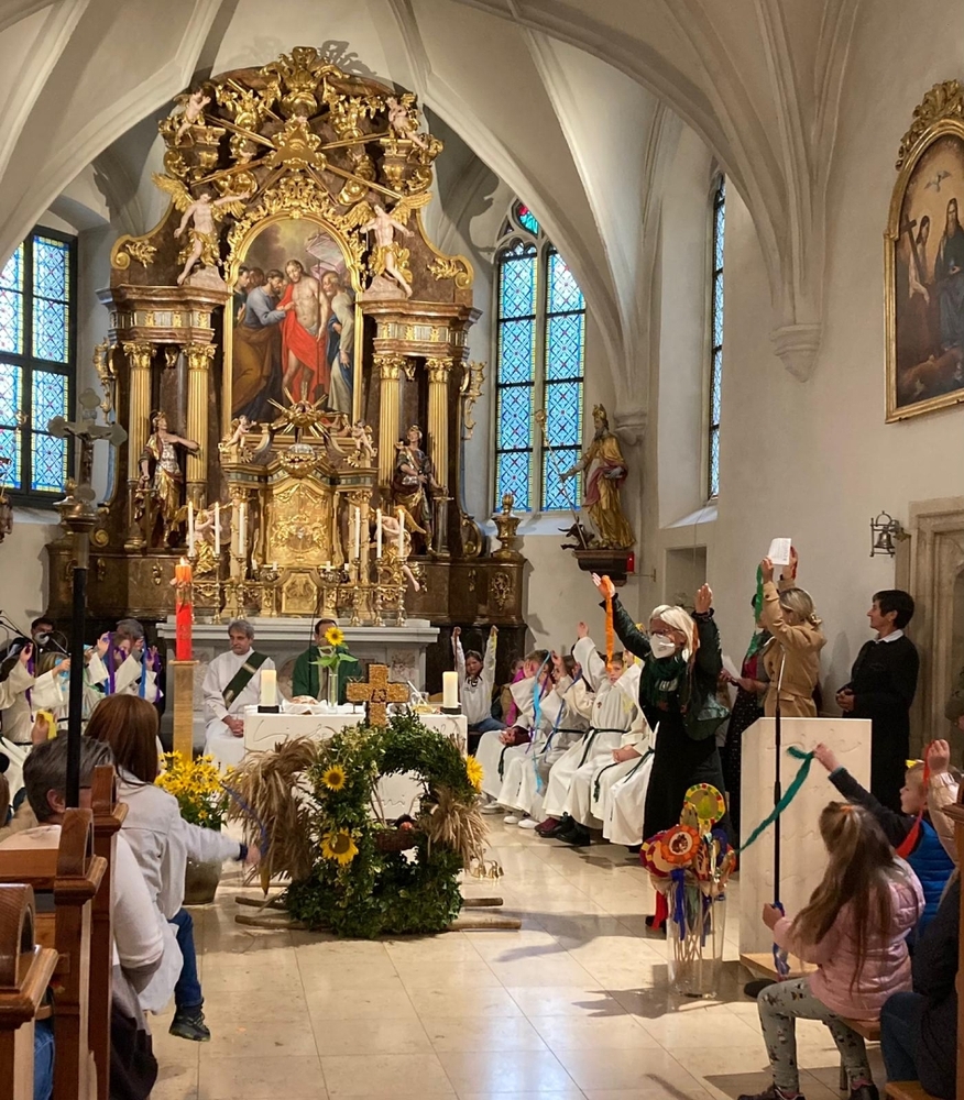 Danke allen Mitwirkenden, besonders Herrn Vikar Gerhard Hatzmann, Diakon Michi Zepf, den Minis, der Mesnerin, unserer tollen Musikgruppe, den Kindergartenkindern und Schüler*innen für ihre Beiträge, der LJ-Zettling für die Erntekrone, dem Sozialkreis für die köstliche Agape und dem PGR für den organisatorischen Rahmen.
