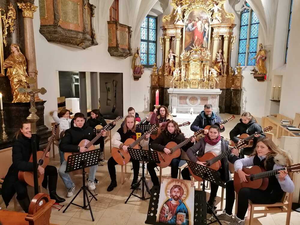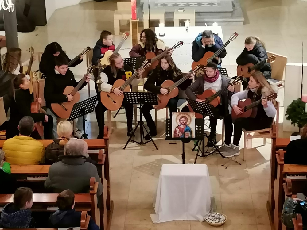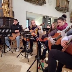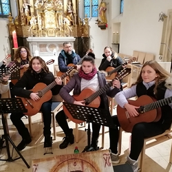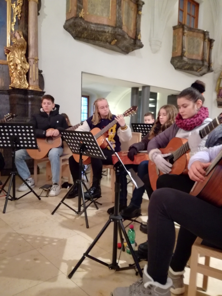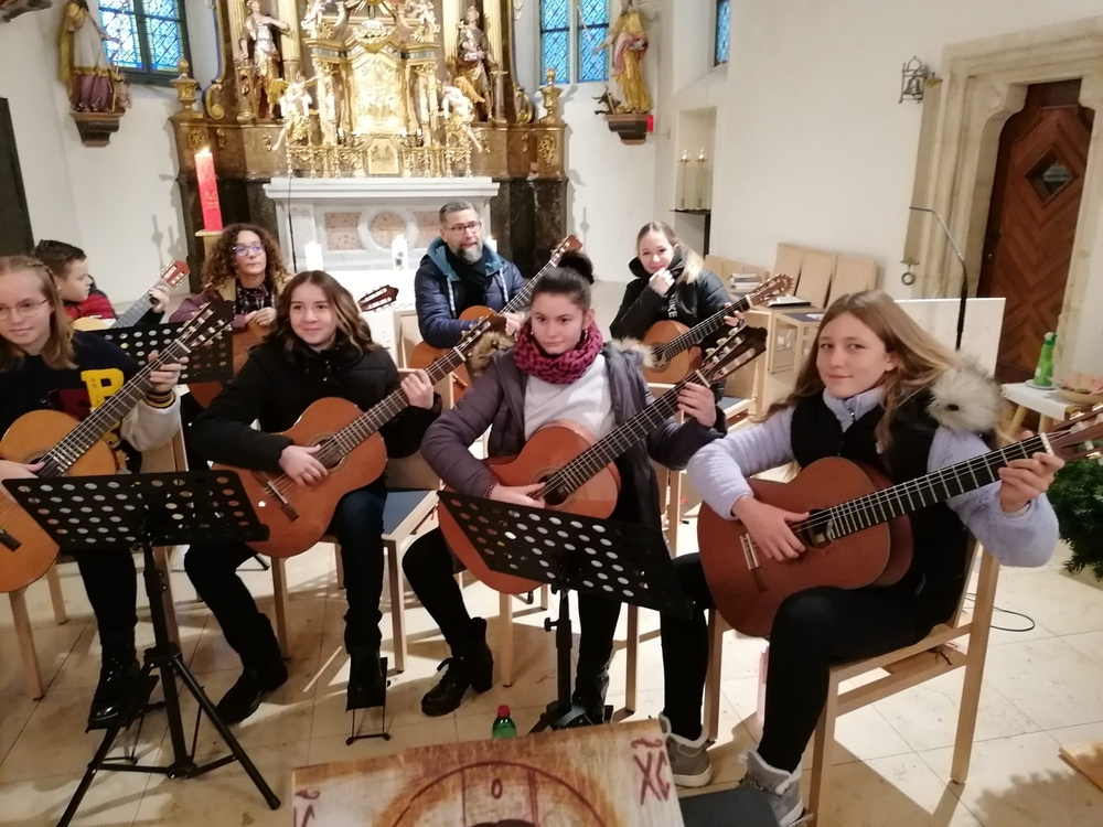 Das Gitarrenensemble der Musikschule Premstätten sorgte am 2. Adventsonntag bei der Wort-Gottes-Feier, die von WGF-Leiter Helmut Kirchengast gefeiert wurde, für eine wunderschöne musikalische Gestaltung.