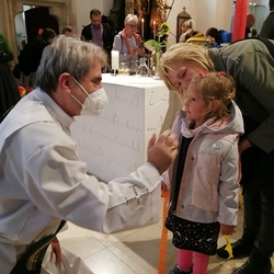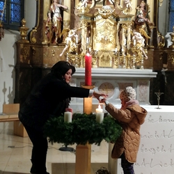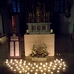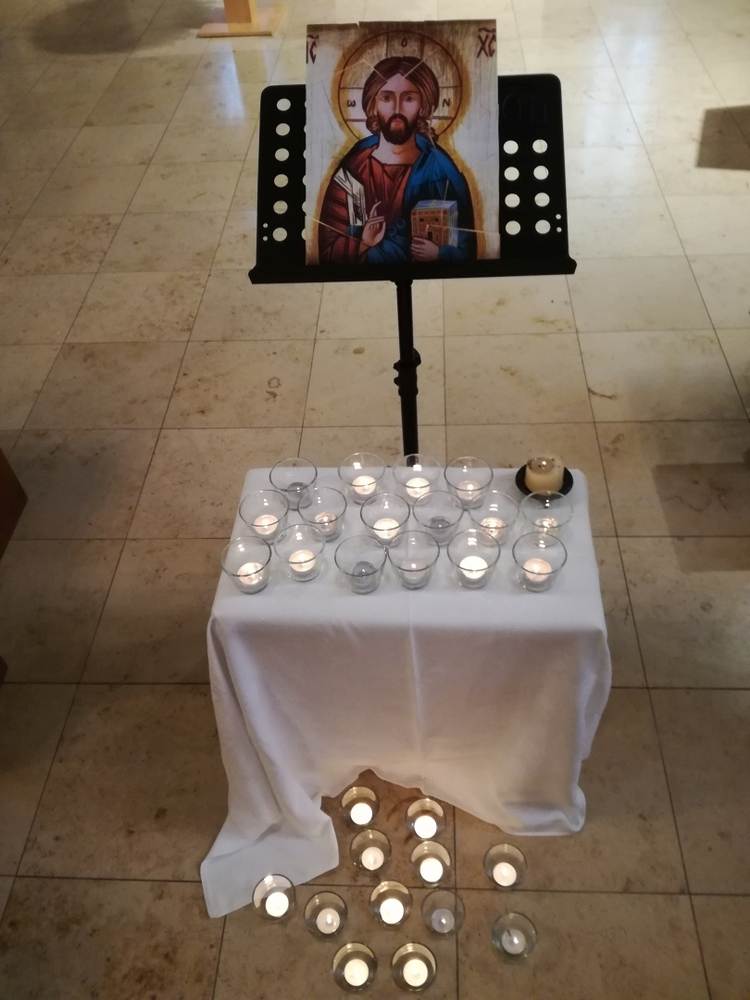 In dem Sinne, dass jede und jeder von uns Friedens- und LichtbringerIn sein kann, waren die Gläubigen eingeladen, Teelichter vor der Christus-Ikone zu entzünden.