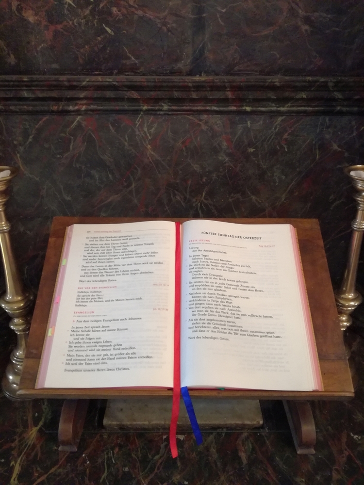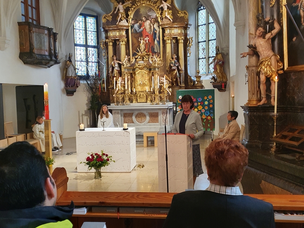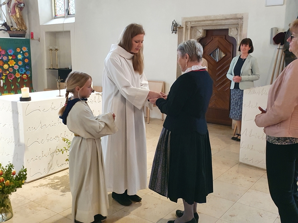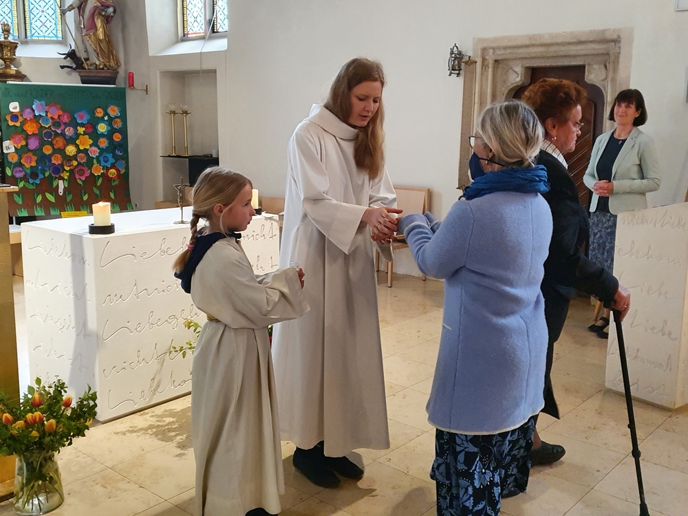 Aller Mütter und mütterlicher Menschen wurde in der Wort-Gottes-Feier am Muttertag besonders gedacht. Anja Asel, Leiterin der Feier, betonte in ihrer Predigt die Ähnlichkeit von mütterlichem Handeln mit dem Wirken des „Guten Hirten“, wie es im Tagesevangelium aufgezeigt wird. Das Ritual der Händesalbung hob schließlich das segensreiche Tun mütterlicher Hände besonders hervor. Kraft und Segen wurden zugesprochen und mit auf den Weg gegeben. In Marienliedern erging auch das Lob an die Mutter aller Mütter, die Gottesmutter Maria.