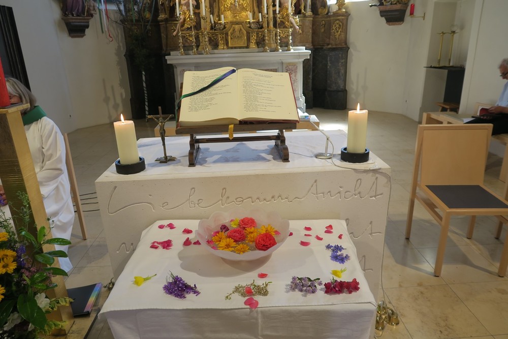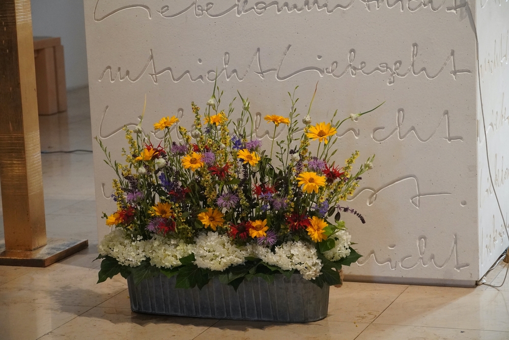 In einem schönen Blumenritual konnte jede und jeder selber in Gedanken aussprechen, was Jesus für sie oder ihn bedeutet. Vielleicht ist er Freund und Begleiter, vielleicht Sonne und Halt im Leben und noch vieles mehr.