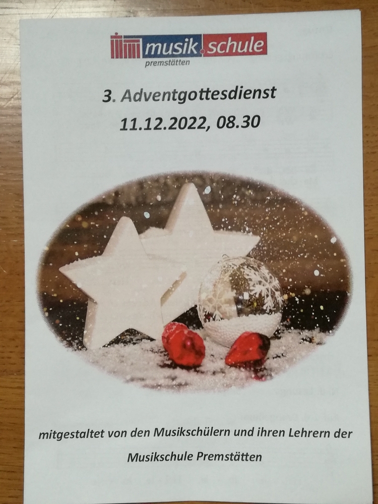 Besondere Freude, aber auch adventliche Besinnung, schenkte uns auch der Gaudete-Gottesdienst mit Vikar Norbert Glaser und der Musikschule Premstätten. In der Predigt erfuhren wir, was die verheißungsvollen Worte des Propheten Jesaja über die Wüste, die zum Garten wird, (Jes 35,1-6a.10), für uns heute bedeuten könnten.