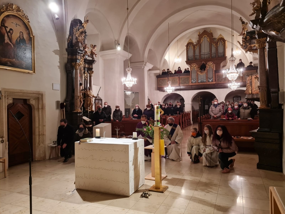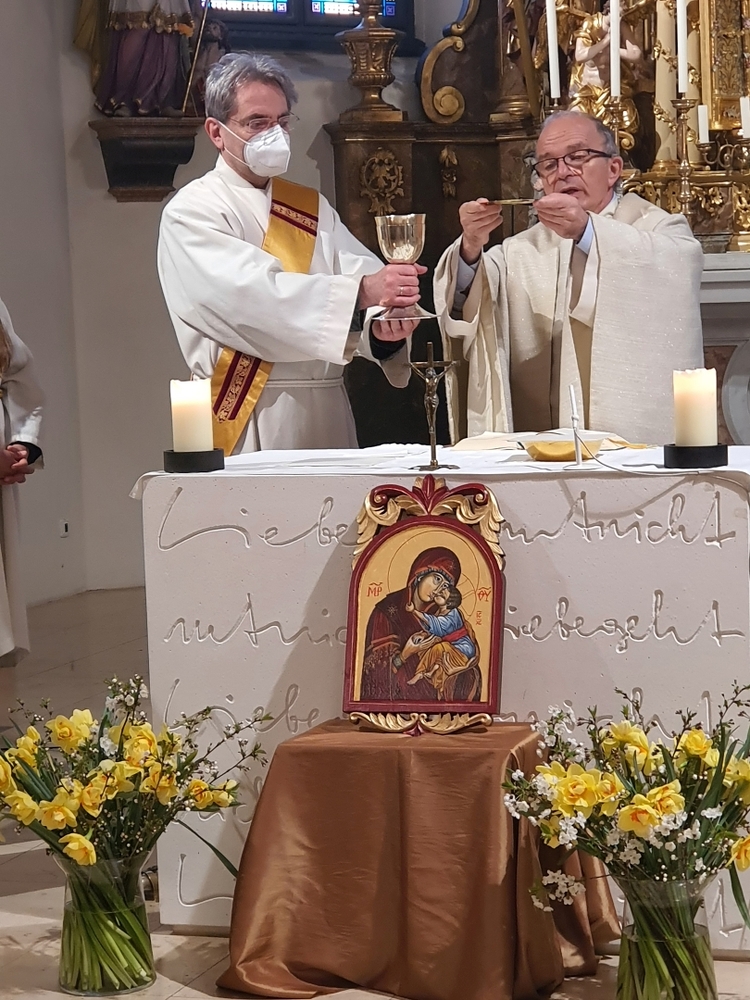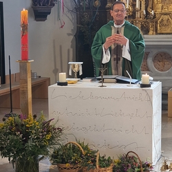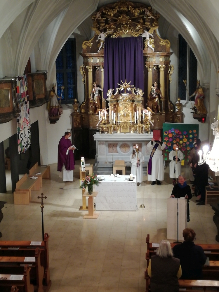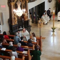 Am 3. Fastensonntag feierte Claudiu Budau dann überraschend auch die Sonntagsmesse bei uns. Im Mittelpunkt stand Gottes Zusage an uns - „Ich bin da“ und stehe zu euch, auch in so schwerer Zeit!