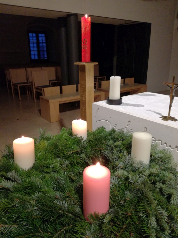 „Wir öffnen unsre Herzen und machen uns bereit für die Ankunft des Herrn“, sangen wir zu Beginn der Wort-Gottes-Feier mit Adventkranzsegnung am Vorabend zum 1. Advent. Genau das ist es, das ist Advent! Diakon Michi Zepf feierte mit uns und die Kirchen-Band begeisterte mit neuen rhythmischen Adventliedern.