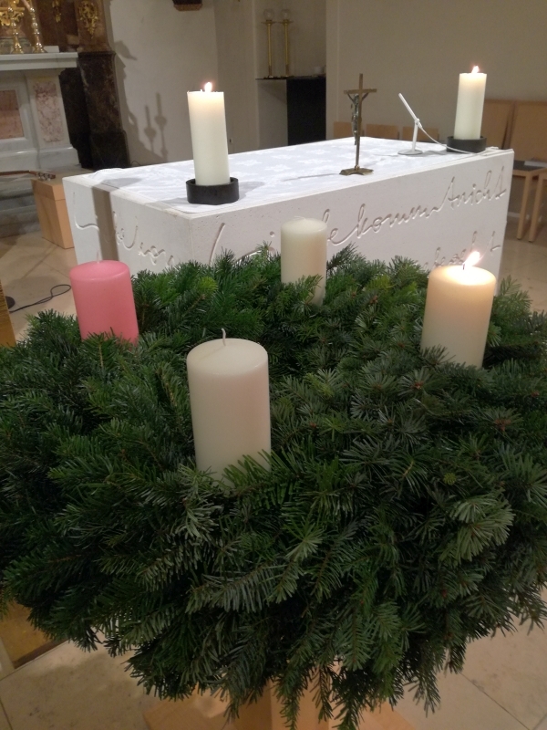 Der 3. Adventsonntag trägt den Namen „Gaudete!“, was „Freuet euch!“ heißt. „Freuet euch auf das Kommen des Herrn!“ Die rosa Kerze auf dem Adventkranz symbolisiert diese Vorfreude.