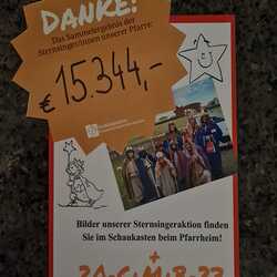 So durften die Sternsinger diesmal 15.344,- Euro in unserer Pfarrgemeinde sammeln.