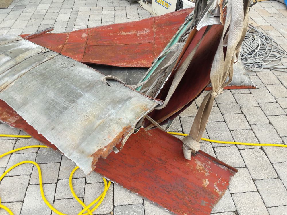 - Altes Blech abmontiert und mit Kupferblech neu verkleidet