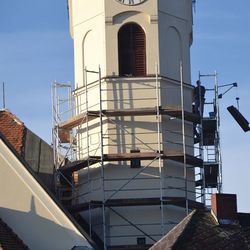 - Gerüstaufbau für die Erneuerung des Turmbleches